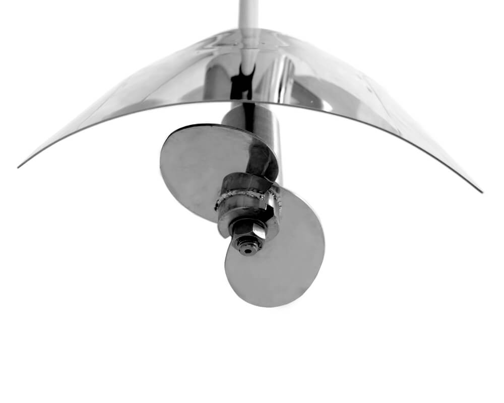 Винты мотора изготовлены из высококачественной нержавеющей стали. Благодаря прочному стальному винту специальной конструкции и системе свободной подвески на транце, мотор успешно противостоит ударам о подводные препятствия и дно водоёма. Винты не боятся работы в вязкой среде, таких как ил, песок, вода с водорослями.