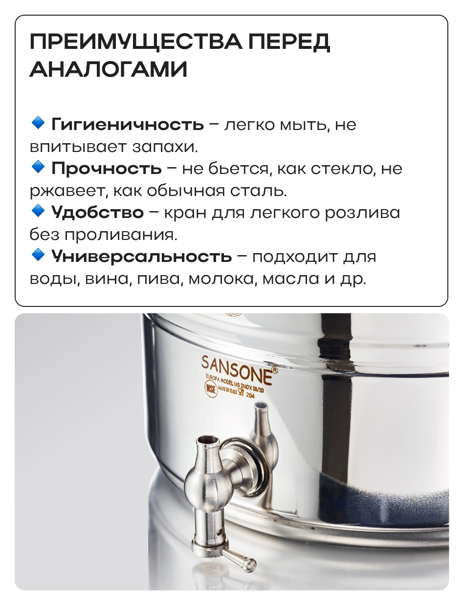 - Итальянское качество товара — производитель Sansone, Италия.