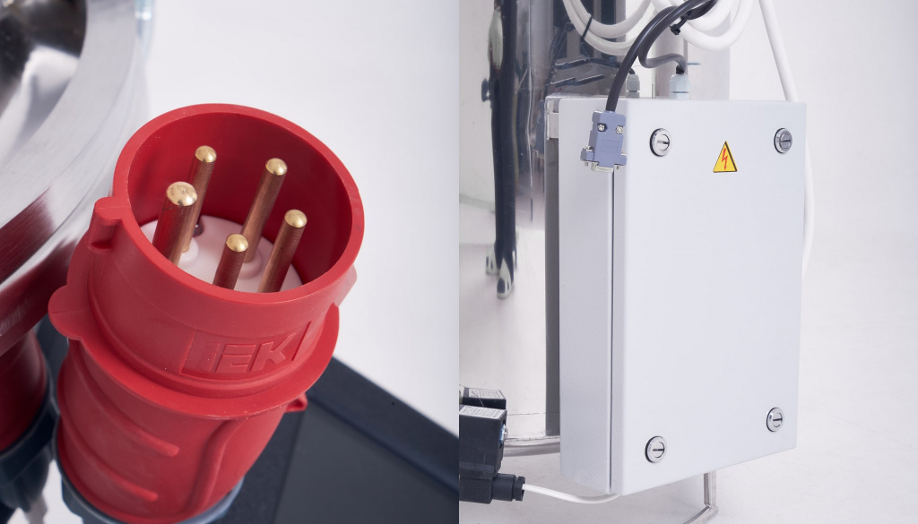 Аппарат комплектуется электрошкафом с автоматическим выключателем и пускателем, работает от сети 380 В. Внутри установлен блок ТЭНов с защитным фальшдном. Такое решение гарантирует долговечность и бесперебойную работу даже при ежедневной загрузке.