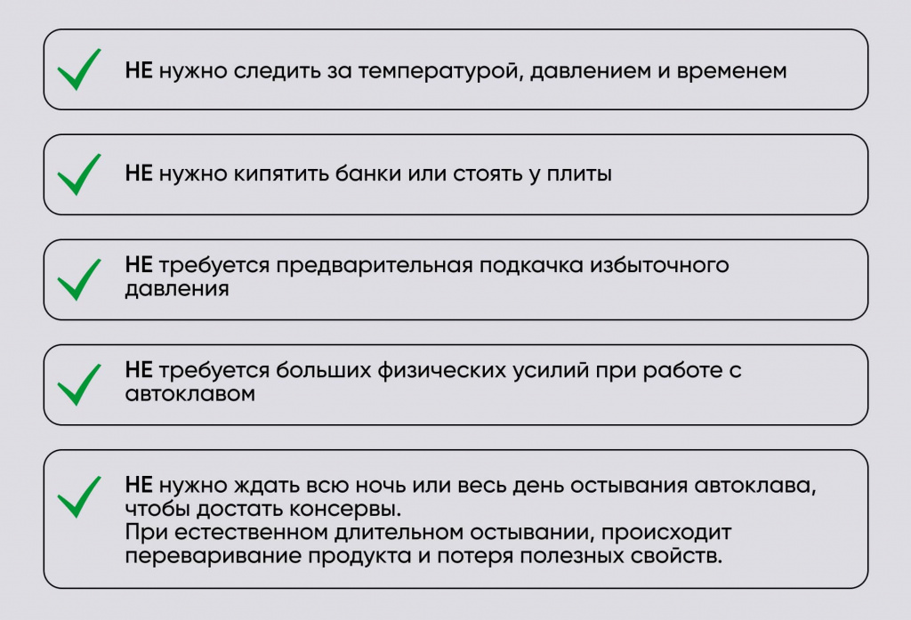 • Отсутствует необходимость в предварительной стерилизации банок