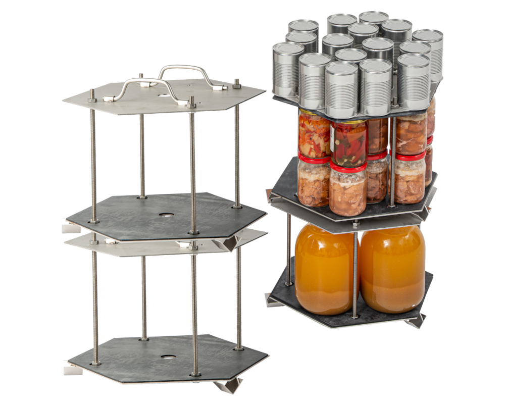 В зависимости от ваших объемов работ, вы можете приобрести 1, 2 или 3 комплекта в качестве запасных. После окончания процесса стерилизации в автоклаве, вы открываете автоклав, достаете прижимную кассету с банками и даете остыть уже при комнатной температуре. В другой прижимной кассете вы можете поставить автоклавироваться следующую партию консервов.