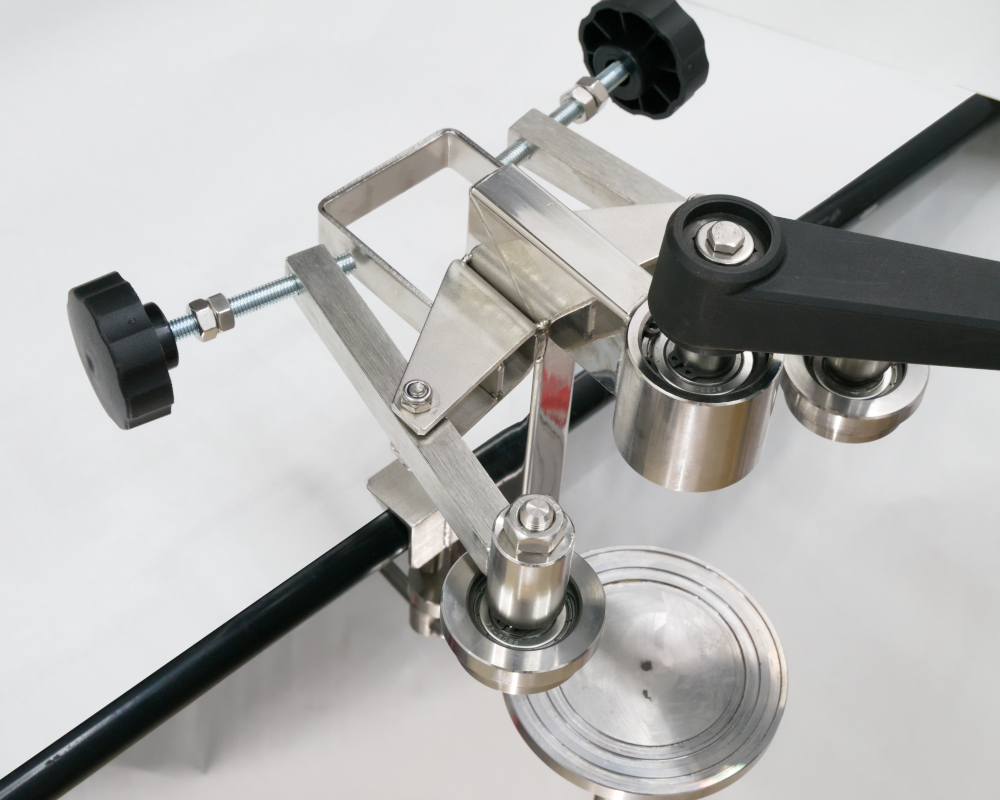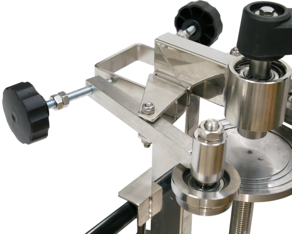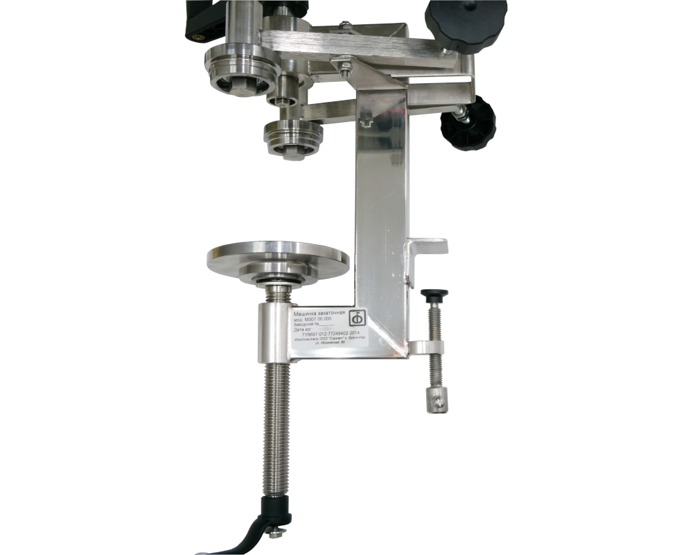 4. Закаточная машинка крепится к столешнице струбцинным механизмом. Все механизмы изготовлены на высокоточном токарном оборудовании, прошедшем калибровки и плановую сертификацию.
