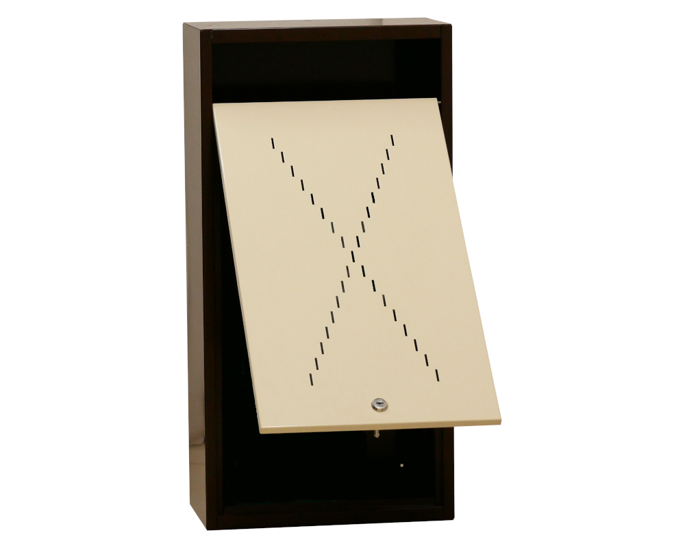 Удобное вертикальное расположение, компактность, позволяет устанавливать ящик в любом удобном месте. Плотное открывание, за счет качества прочного металлического изготовления. Ящик оснащен замком с секретностью и 2мя ключами, что удобно для обслуживающего персонала. Данная модель может быть изготовлена и окрашена под заказ по каталогу RAL, чтобы дополнить и создать законченный образ вашего дизайна помещения.