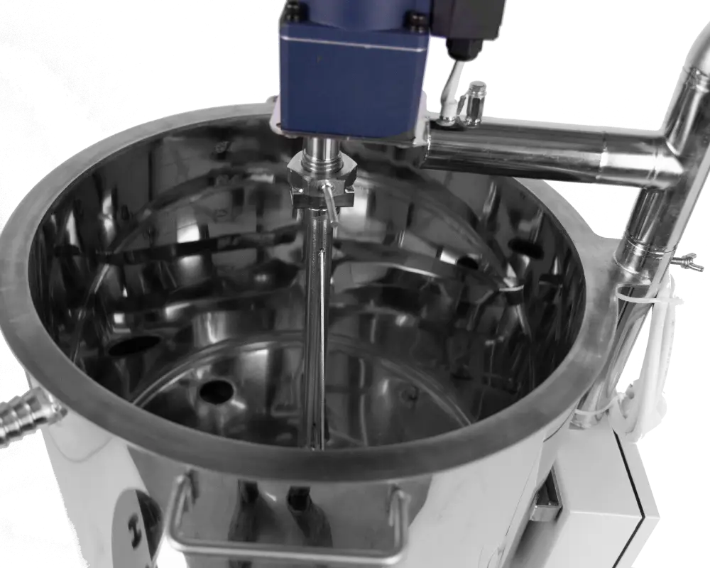 Конструкция включает водяную рубашку для равномерного нагрева, сливной кран для лёгкого переливания и промывки, крышку и ручки для удобства работы. Все элементы продуманы для безопасного и комфортного использования.