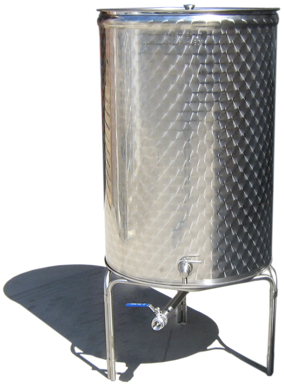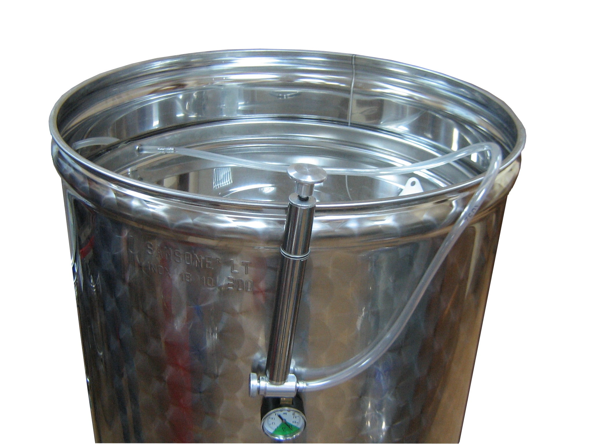 Емкость с пылезащитной и пневматической (плавающей) крышкой из пищевой нержавеющей стали. Подходит для бурного брожения (первичное), для тихого брожения (вторичное) и для длительного хранения (созревания продукта). Производство - Италия.