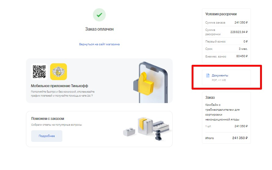 По завершению оформления необходимо скачать Документы, предоставляемые банком.