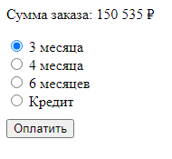 Перейдите на страницу оформления услуги и выберите вид услуги: рассрочка на 3, 4 или 6 месяцев, либо Кредит.